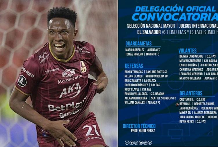 La selección de El Salvador llamo los jugadores que estarán en los próximos partidos y ha tenido en cuenta al delantero del Deportes Tolima Brayan Gil, jugador que actualmente es el goleador pijao con 2 tantos y esta reapareciendo en la formación luego de una expulsión y un pequeño tema de salud ya superado encontrándose en muy buenas condiciones.