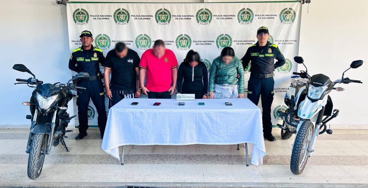 Los capturados fueron identificados como Israel González Buitrago, alias El Viejo, presunto cabecilla de la organización; Karla Melisa Cabrera Pinilla, alias 'La Japonesa'; Charith Idnoha Gutiérrez y Darwin Gallo Ortega, alias 'Gomelo'. Según las investigaciones, cada uno cumplía un rol específico dentro del grupo, desde la marcación de las víctimas hasta el seguimiento y la ejecución de los robos.