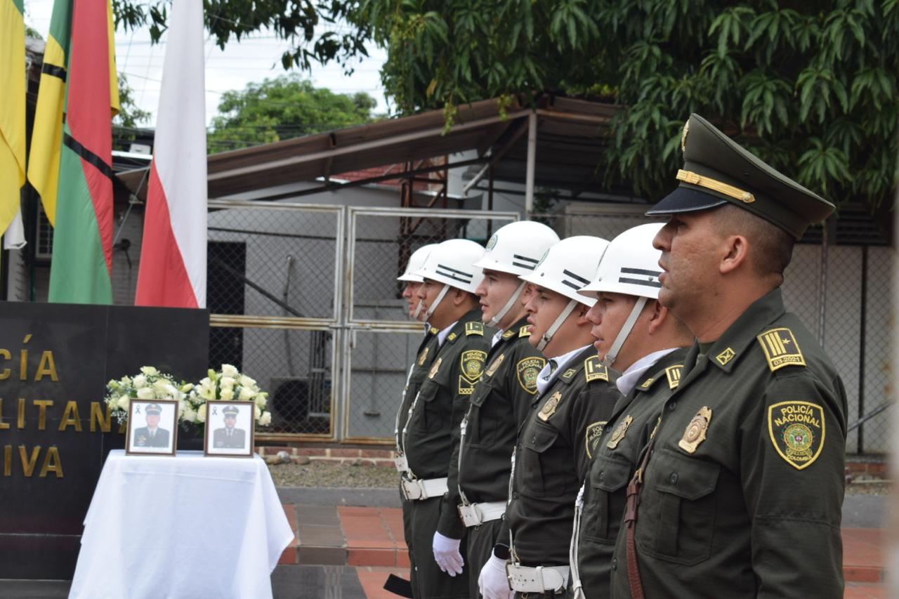 En un acto solemne en los municipios de Nátaga y Neiva, las autoridades rindieron un sentido homenaje y ofrenda floral en memoria a los dos integrantes de la policía asesinados por disidencias de las FARC en el municipio de Nátaga hace un año.