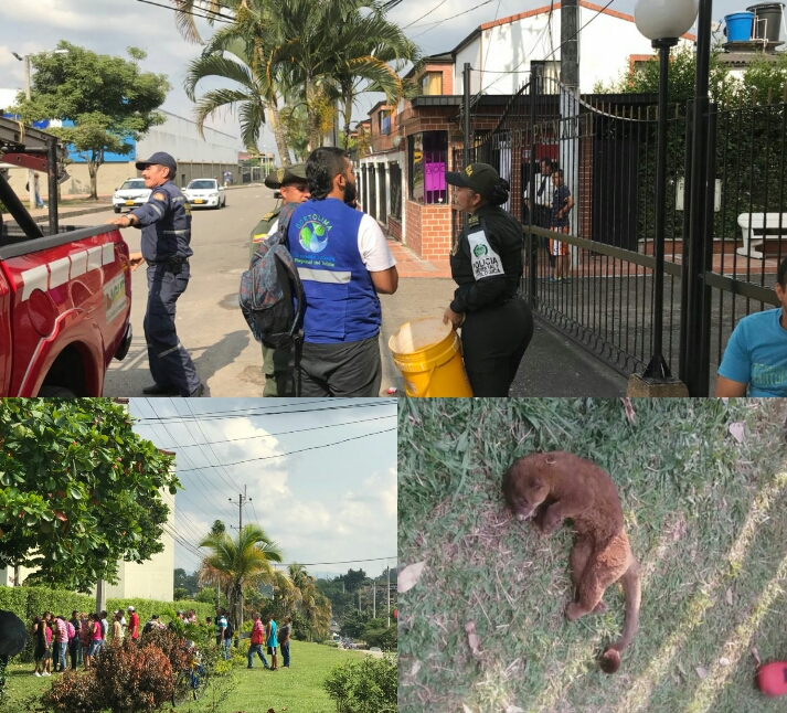 Es así que al sitio llegó un veterinario de Cortolima, personal de la Policía ambiental y Bomberos, quienes argumentaron que al animal se le venía haciendo un monitoreo, suministrándole comida en la copa del árbol para tratar de capturarlo y retirarlo de éste sector residencial.