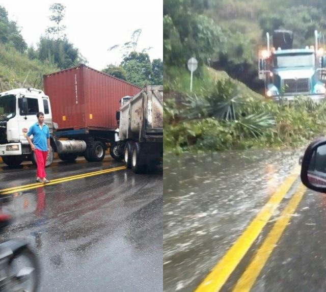 Es así que la primera situación se registró a la altura del kilómetro 77, donde se produjo la colisión de una volqueta tipo doble troque de placas USC-505, y dos tracto mulas de placas WEP-856 y SON-563, luego que el conductor del primer vehículo perdiera el control al movilizarse a gran velocidad y tratar de frenar con el pavimento húmedo, impactando los otros automotores.