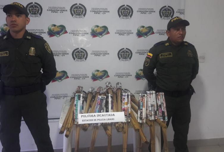 El caso se registró en las últimas horas en la vereda Las Alegrías ubicada en la vía que une al municipio de Líbano con Murillo dónde integrantes de la Policía departamental en coordinación con tropas del Ejército, lograron la incautación de una gran cantidad de pólvora tipo voladores los cuales eran transportados por un ciudadano de 60 años.