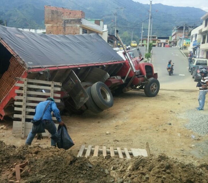 El caso tuvo lugar en la carrera Segunda con calle 31 de la ciudad de Ibagué, donde a un vehículo de carga pesada se le hundió en la vía una de las llantas, ocasionando que el camión terminará casi volcado de forma lateral.