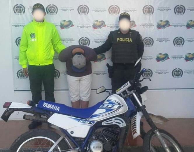 Se trata de Elberth Gómez Sánchez alias 'Care Mango', quien fue detenido en las últimas horas por integrantes de la Policía del departamento del Tolima en el municipio de Chaparral, luego de emprender la huída a bordo de una motocicleta Yamaha DT125, la cual se hurto en compañía de un menor de edad.