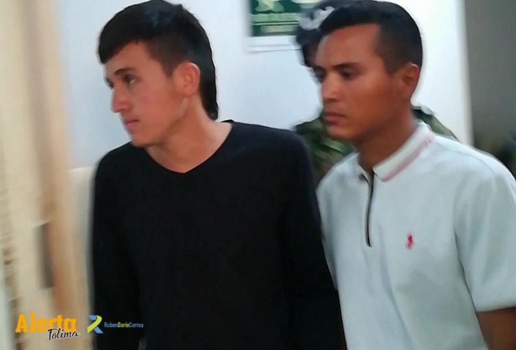 El Fiscal Delegado contra el Crimen Organizado, presentó a dos de los tres capturados por el Ejército Nacional y su comando especial, ante los estrados judiciales fueron identificados como Yamel González Laserna y Jhon James Guzmán Lugo, ambos oriundos de Ibagué, quienes fueron detenidos conforme a la orden de registro y allanamiento a una vivienda ubicada en zona rural de la capital tolimense.