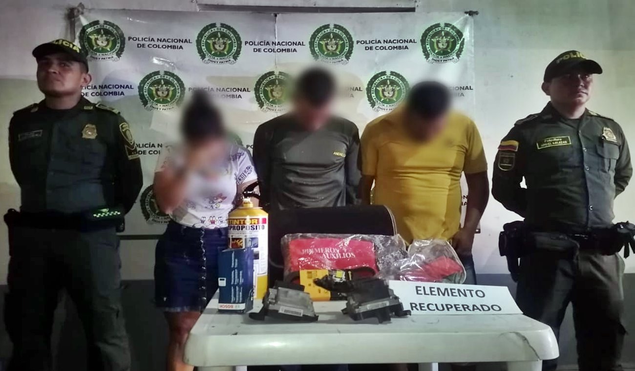 Es así como de inmediato y gracias a las características aportadas por uno de los afectados, mediante de un contundente plan candado, sobre el barrio Bonanza jurisdicción del municipio de Saldaña, se logra la captura en flagrancia de dos individuos de 36 y 37 años y una mujer de 48 años, a quienes al momento de realizarles registro e identificación a personas, se les halló en su poder en la parte trasera del automotor 02 computadores de vehículos y 01 kit de carreteras, avaluados en $1.800.000.