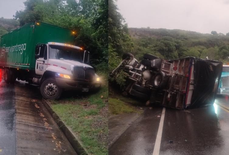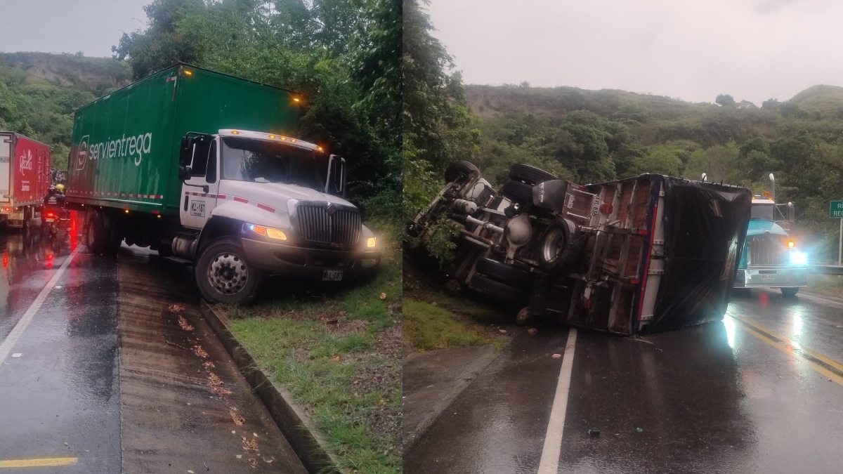 Choque entre tractocamión y furgón causa volcamiento en la vía Venadillo–Lérida