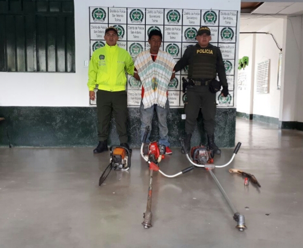 La situación se presentó en la vereda Angostura ubicada en la zona rural del municipio de San Antonio, donde la rápida acción de la Policía permitió la captura de sujeto de 38 años quien minutos atrás mediante la modalidad de ventosa ingresó a la casa de una finca y se hurtó unas herramientas avaluados en cuatro millones de pesos.