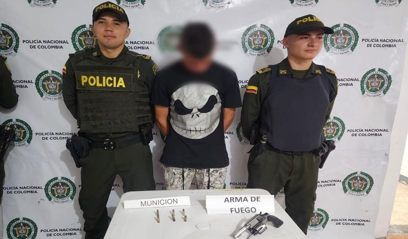 El hecho se presentó sobre las 08:00 de la noche, en la vereda Mireya jurisdicción del municipio en mención, lugar donde los uniformados realizaban planes y controles diferenciales, donde gracias a la información oportuna de la comunidad, se logró la captura en flagrancia de un sujeto de 18 años conocido como ‘Balin’, a quien al momento de realizarle registro e identificación a personas, se le halló sobre la pretina del pantalón, un arma de fuego tipo revólver calibre 32 milímetros con tres cartuchos sin percutir y 01 más percutido, sin permiso para porte o tenencia.
