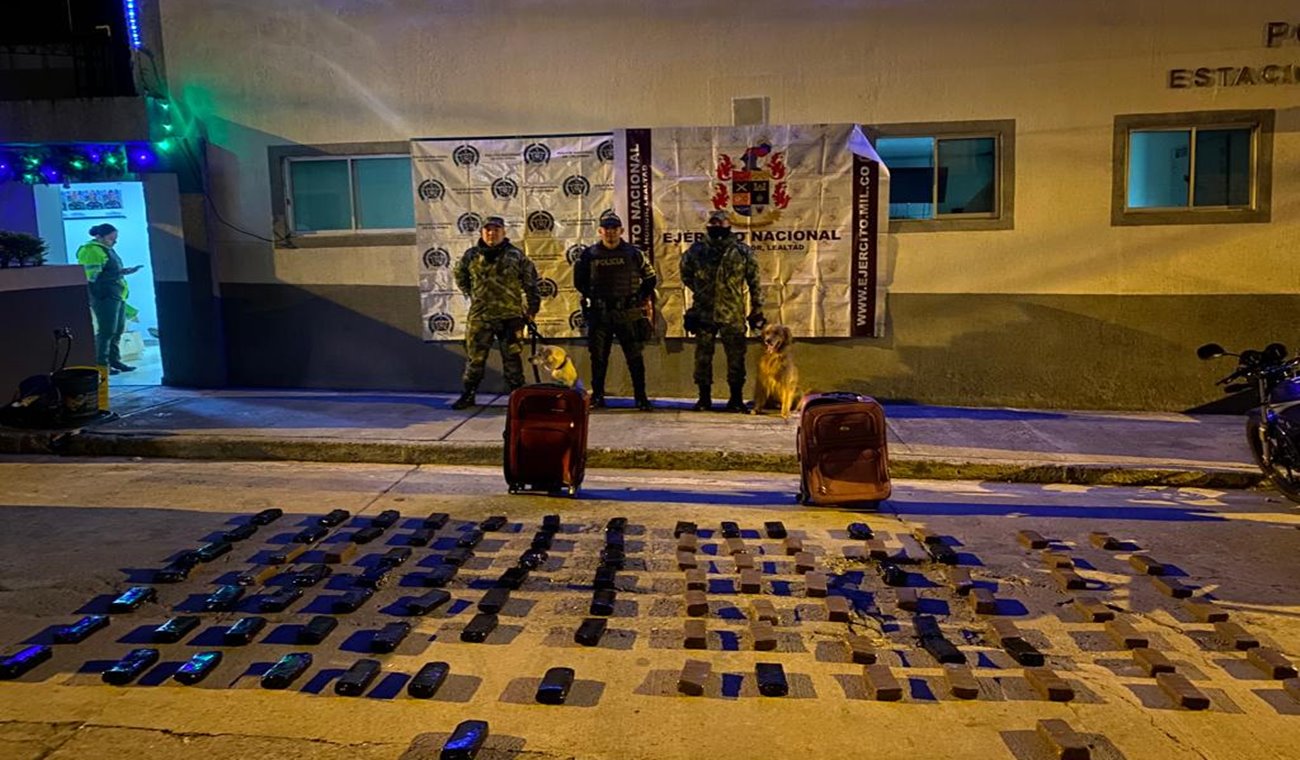 Los controles permanentes sobre la vía que conecta al occidente con el centro del país permitieron que, en el municipio de Cajamarca, Tolima, soldados del Batallón de Infantería N.° 18 coronel Jaime Rooke, de la Sexta Brigada del Ejército Nacional, y la Policía Metropolitana de Ibagué ubicaran en la bodega de equipaje de un bus intermunicipal dos maletas con 50 kilos de marihuana.