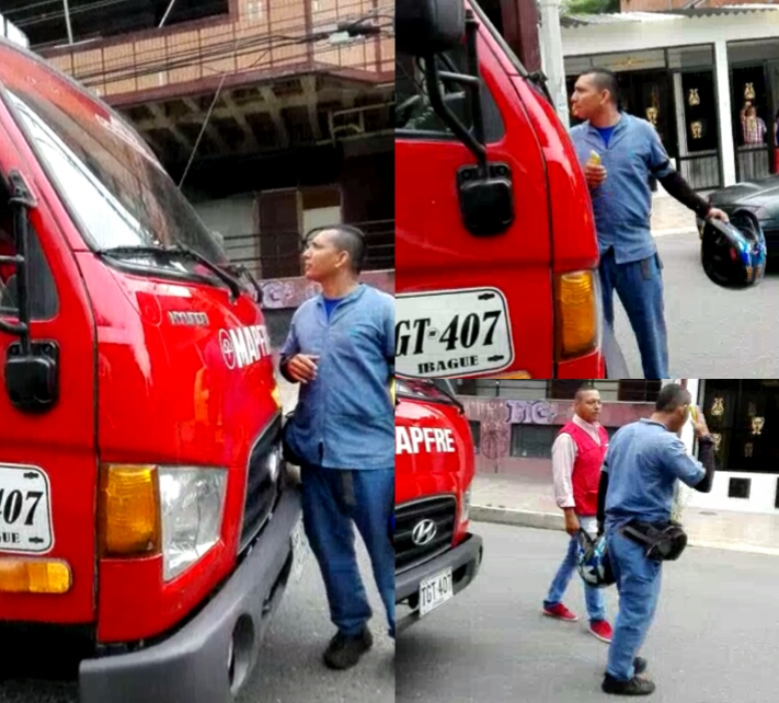 Teniendo en cuenta que el conductor del vehículo de carga se pretendía marchar, el motociclista se bajó rápidamente de su vehículo para evitar que el otro ciudadano se evadiera, atravesándosele en el camino mientras le exigía que le pagara el daño.