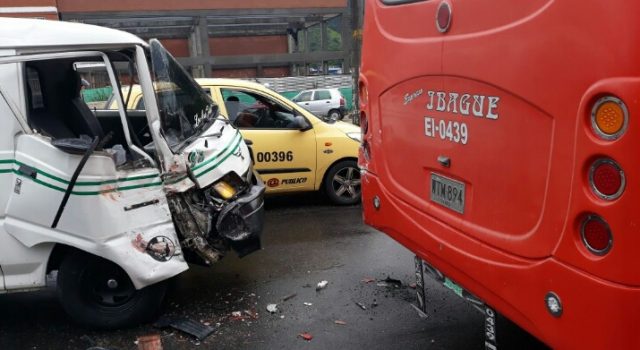 El caso de accidentalidad se presentó sobre la carrera Quinta diagonal al conocido Motel Karibana, donde colisionaron con violencia una ruta escolar y una buseta de servicio público de placas WTM-894 adscrita a la empresa Expreso Ibagué, generando una monumental congestión en la zona.
