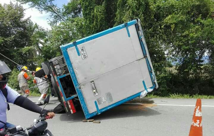 La situación tuvo lugar en el sector conocido como El Eneal, ubicado entre la vía que de Espinal conduce al municipio del Guamo, donde el conductor de un vehículo de carga pesada tipo furgón periodo el control, ocasionando que terminara volcándose lateralmente.