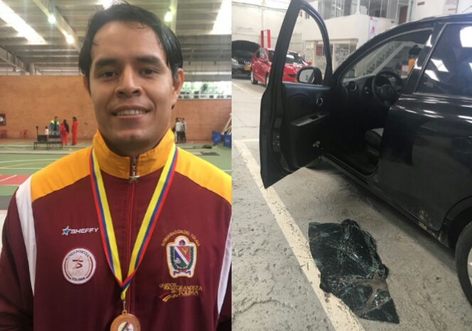 El caso le ocurrió al esgrimista Carlos Molano medallista tolimense de bronce de los Juegos Nacionales, quien la noche anterior fue objeto de robo en las instalaciones del Parque Deportivo de la ciudad de Ibagué, luego que delincuentes le rompieran el vidrio lateral de su vehículo Nissan March.