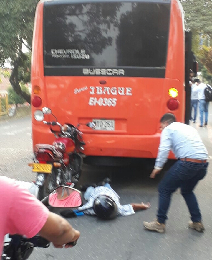 El caso de accidentalidad se registró sobre la avenida Ambalá entre calles 37 y 38, frente al barrio Córdoba, donde el conductor de una motocicleta terminó estrellándose violentamente contra la parte trasera de una buseta de servicio público adscrita la empresa Expreso Ibagué, la cual al parecer frenó de forma intempestiva sin permitirle al motociclista reaccionar.