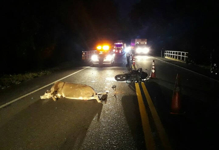 Producto del golpe el animal murió en la carretera, mientras los dos hermanos que viajaban en la moto resultaron heridos, siendo identificados por las autoridades como Alexander Nieto Paloma y Ferney Nieto Paloma, quienes sufrieron politraumatismos y fracturas derivadas de la violenta colisión.
