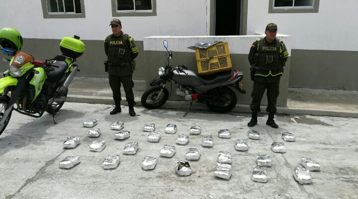 Según el informe entregado por las autoridades, la presencia de los uniformados en la vía llevaron a que el conductor dejara abandonada la moto con los estupefacientes para evitar la captura.