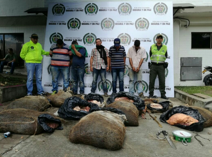 Fue así que al hacer la verificación de los costales se pudo establecer que estaban llenos de carne de res, la cual al hacer la verificación se logró establecer que había sido hurta mediante la modalidad de abigeato en la zona rural de Ambalema, donde sacrificaron cinco vacas.