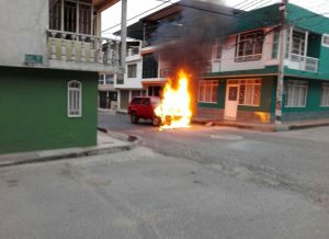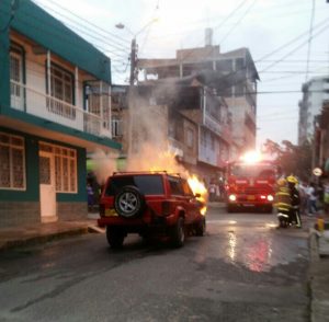 El caso se registró en le barrio Palermo de la ciudad de Ibagué, donde el conductor de un vehículo tipo camioneta de placas CED-893 se incendió, mientras esperaba el cambio del semáforo que conecta con la avenida Pedro Tafur.