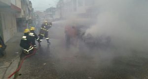 Fue así que pasados varios minutos hicieron presencia integrantes del cuerpo de Bomberos, quienes fueron los encargados de apagar el fuego que estaba llegando al habitáculo de los pasajeros.