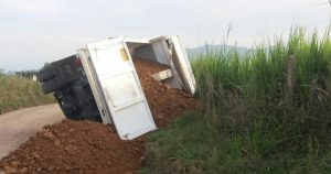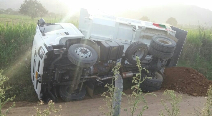 El caso se registró en la Vereda Aparco de la ciudad de Ibagué, donde un vehículo tipo volqueta de placas OET-006 terminó volado a un costado de la vía, luego que el conductor se acercara mucho a una cuneta y por el peso de la carga terminara ladeándose.