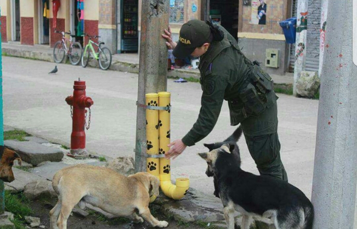 Desde este fin de semana los perros callejeros del municipio de Murillo disponen de comedores comunitarios en donde pueden calmar el hambre y la sed, gracias al esfuerzo e iniciativa de la Patrullera Ana María Castillo Gutiérrez en compañía del Patrullero Óscar Mauricio Flórez, quienes son integrantes de la estación de Policía de esa población.
