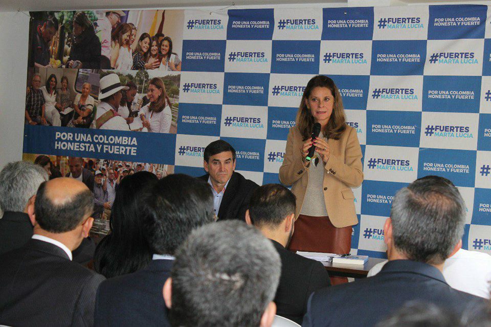 Por otra parte la candidata vicepresidencial advirtió."No podemos negar que sí hay corrupción en la política y tenemos que señalarla, criticarla, rechazarla y no seguir en una sociedad con una doble moral donde se mete por debajo de la alfombra la basura que hay. Por eso los cambios sociales tenemos que hacerlos desde adentro y no pensando en realizarlos desde fuera de la institucionalidad con métodos no legales”, en reunión con empresarios del transporte, autopartes, aeronáutico, espacial, gastronómico y de la seguridad privada en Bogotá.