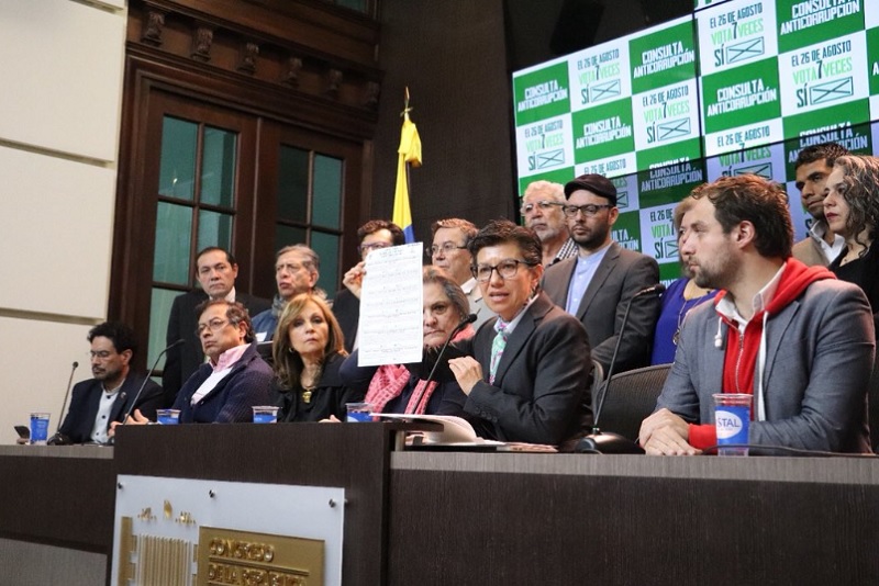 Igualmente, en una rueda de prensa realizada por López, presentó a las personas que se suman al comité de la campaña de la consulta anticorrupción, en el cual se cuenta con el apoyo de representantes de distintos partidos políticos y a su vez, personajes como Gustavo Petro y Clara López, también extendió la invitación al presidente electo Iván Duque a participar de la iniciativa.