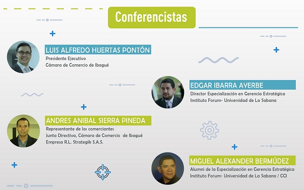 Entre los participantes se contará con la presencia del Presidente Ejecutivo de la CCI Luis Alfredo Huertas Pontón, Edgar Ibarra Ayerbe Director de la Especialización en Gerencia Estratégica de la Universidad de la Sabana, Miguel Alexander Bermúdez Egresado de la Especialización en Gerencia Estratégica y Andrés Sierra Representante de los comerciantes e integrante de la Junta Directiva de la CCI.