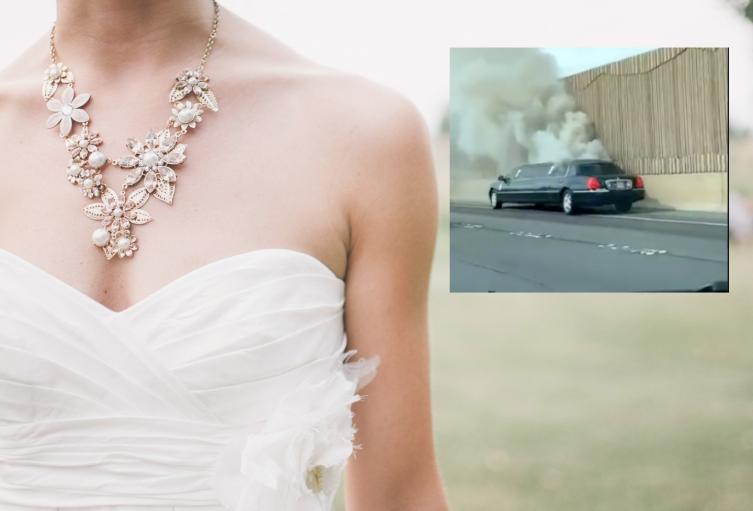 Poco después del aparatoso impasse, la novia explicó que olió a quemado cuando comenzó a salir humo por debajo del asiento del conductor.