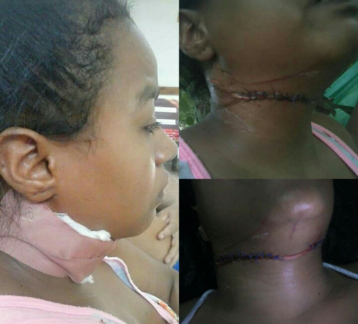 Hay que señalar que la joven fue llevada de inmediato a las urgencias del hospital San Antonio de esa población, donde le suturaron la delicada herida con 20 puntos externos y dos interno, teniendo en cuenta la lesión que fácilmente le puso haber causado la muerte.