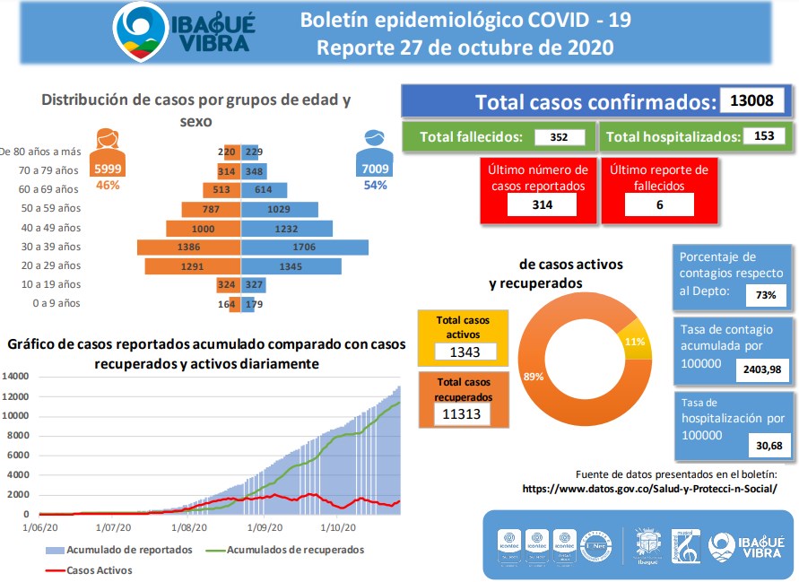 El Instituto Nacional de Salud reportó que la capital del Tolima tiene el registro de 6 personas fallecidas, también que se tienen hospitalizados 153 ciudadanos. Frente a las cifras desde que empezó el virus, se lee en el balance epidemiológico que se tiene un total de 352 fallecidos y se han recuperado 11.313 personas.