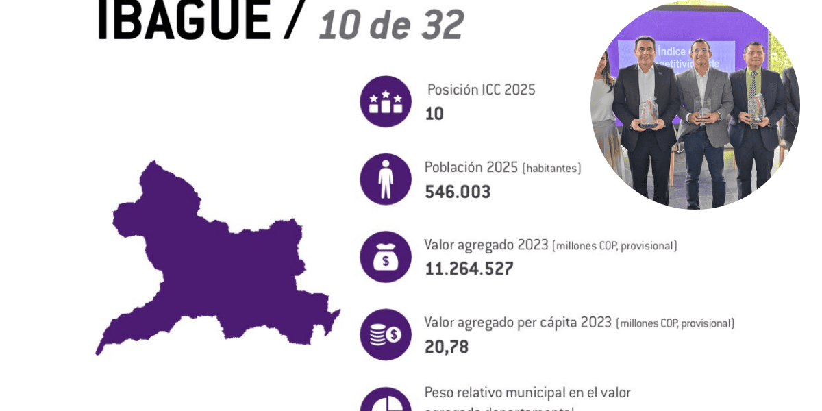 Este es el mejor resultado que ha obtenido Ibagué desde la creación del Índice de Competitividad de Ciudades en 2019, y consolida a la capital tolimense como un destino atractivo para la inversión, el emprendimiento y el desarrollo económico.
