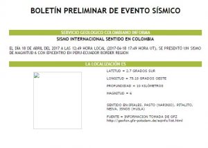 El Servicio Geológico Colombiano ha informado que en horas de mediodía de este martes 18 de abril se registró un sismo de magnitud 6 grados con epicentro en las fronteras de Perú y Ecuador.