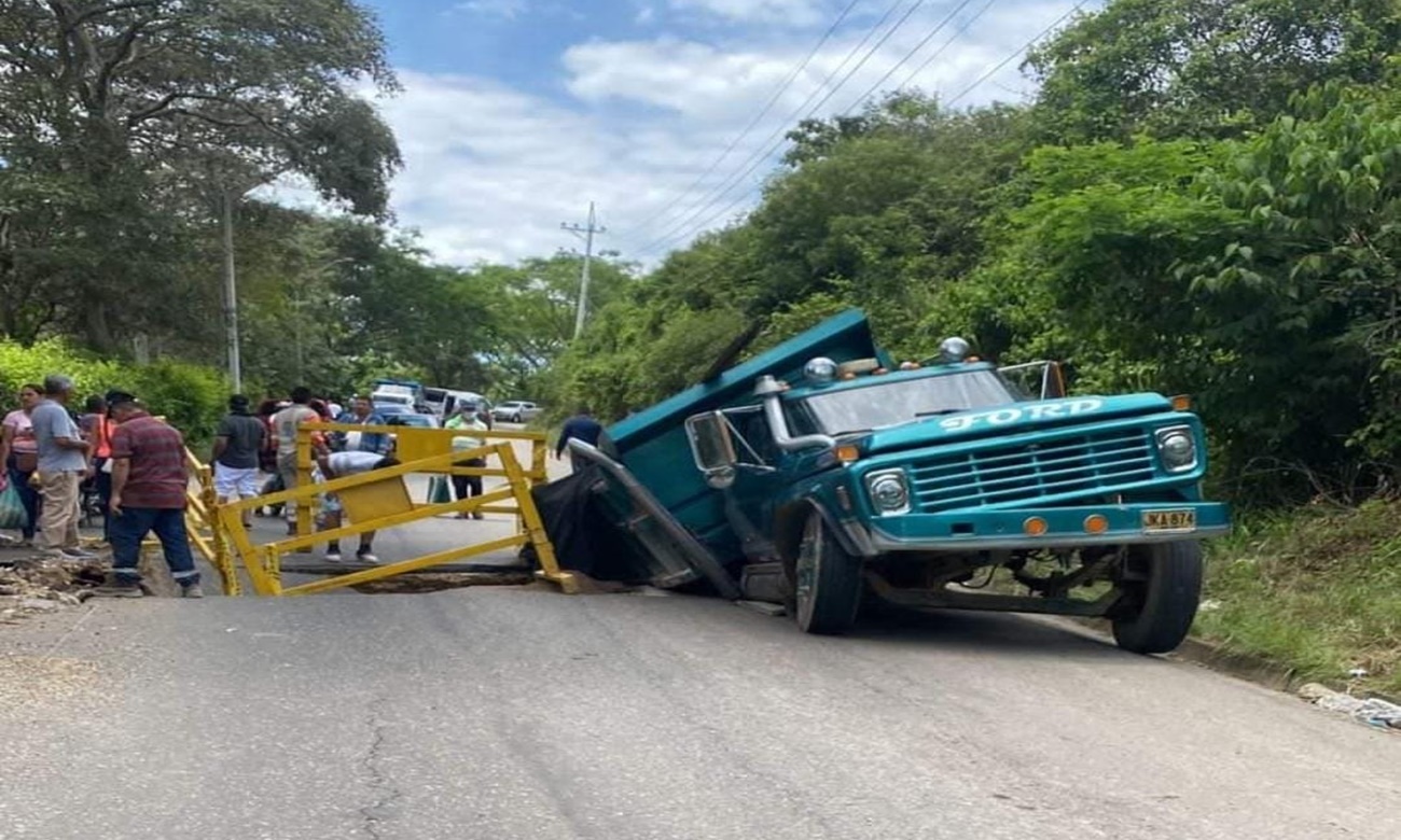La vía de Melgar que conduce a Carmen de Apicalá había estado con paso restringido por más de 12 horas a causa de hundimiento en una alcantarilla por el pésimo estado de las vías, lo que provocó que un camión de carga pesada quedará totalmente atrapado.